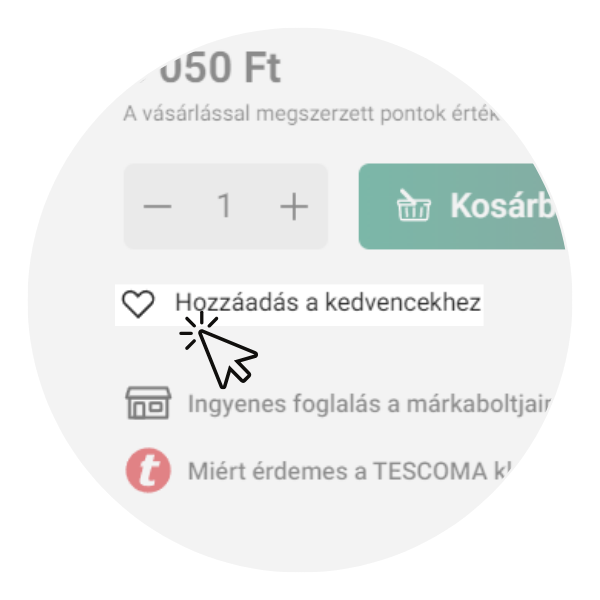 Az elmentett termékeket a Kedvencek menüpontban találod.